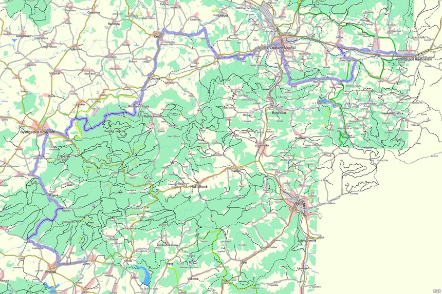 Úseky cesty typu "Lesní/polní" |