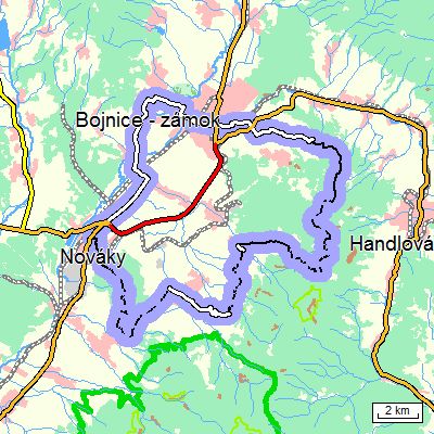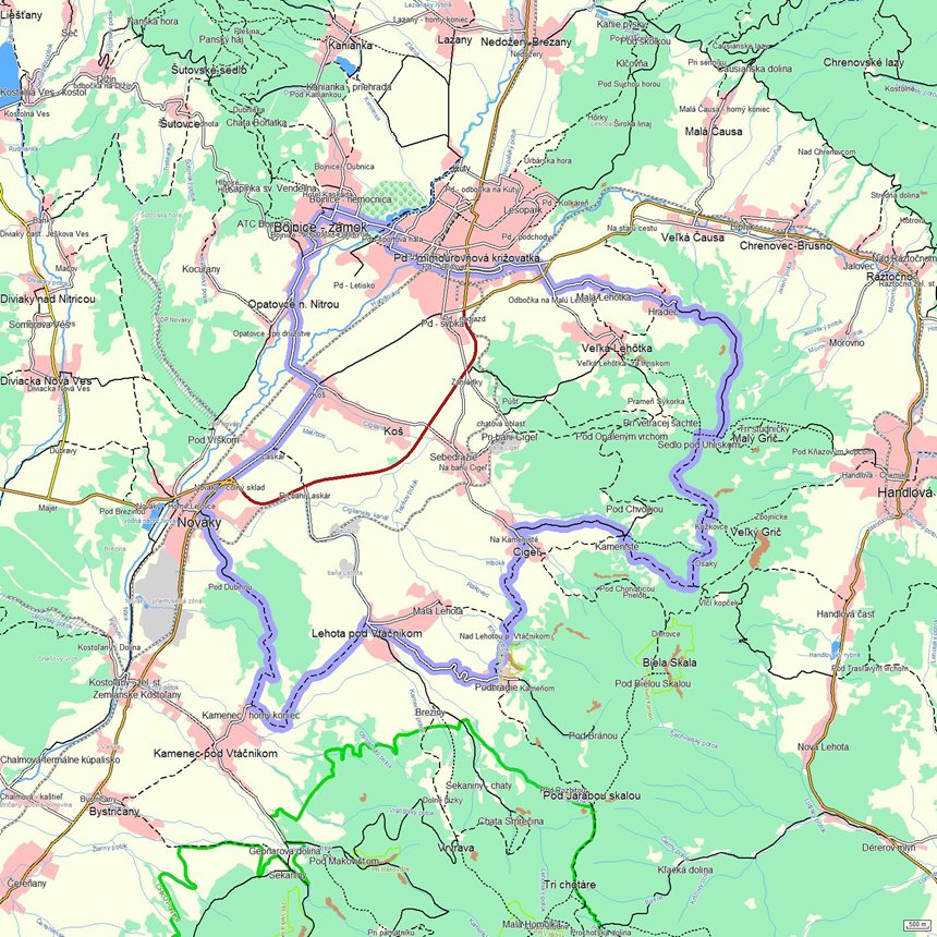 Z Bojnic se vydáme směrem na jih po cyklotrase č. 019, přes Opatovce nad Nitrou, do města Nováky. Zde je nejen vybudované moderní koupaliště, ale v okolí jsou také 2 přehrady, které nabízí rekreační využití. V Novákoch se vydáme po cyklotrase doleva a dojedeme do Kamence pod Vtáčnikom. V katastru obce leží Gepnárová dolina o rozloze 24 ha. Na jedné straně doliny je chráněný přírodní výtvor Makoviště a na druhé straně je chráněný krajinný výtvor Končitá. V obci nepřehlédněte také římsko-katolický kostel ze 16. století. Po dalších 6 km přijedeme do Lehoty pod Vtáčníkom. Spatřit zde můžete Lehotskou farnost pocházející z roku 1322. Další obcí, ve které se zastavíme, je Cigeľ. V této obci navštivte v bývalém rodinném domě pokoj lidových a revolučních tradic. Jsou zde písemné materiály a fotky s tématikou vývoje obce od začátku století až po současnost. Mezi obcemi Cigeľ a Sebedražie najdete rekreační centrum Vodní svět. Čeká na vás lov ryb, pirátská loď, minigolf a spoustu jiných atrakcí. Pokračujeme dál po cyklotrase č. 2308, která vede překrásným prostředím severní části masivu Vtáčnik. Na křižovatce cyklotras odbočíme doleva po cyklotrase č. 8321, po níž dojedeme až do Prievidze (pokračování rovně by nás zavedlo do Handlové), centra hornonitrianskeho regionu s dostatkem příležitostí k ubytování i stravování. Mezi historické památky města patří piaristický římskokatolický kostel postavený v roce 1666, kostel sv. Bartoloměje postavený v gotickém stylu ze 14. stol. nebo mariánský kostel z roku 1260, který byl v 15. stol přestaven v klášter. Obdivovat můžete také měšťanské domy pocházející z 18. a 19. stol. Národní kulturní památkou je Rušňové depo v areálu železniční stanice. Depo bylo vybudováno v období 1912 – 1913. Jedná se o nejzachovalejší objekt svého druhu na Slovensku. Pokud jste se s městem již dostatečně seznámili, jen pár kilometrů nám chybí k dokončení okruhu v Bojnicích.