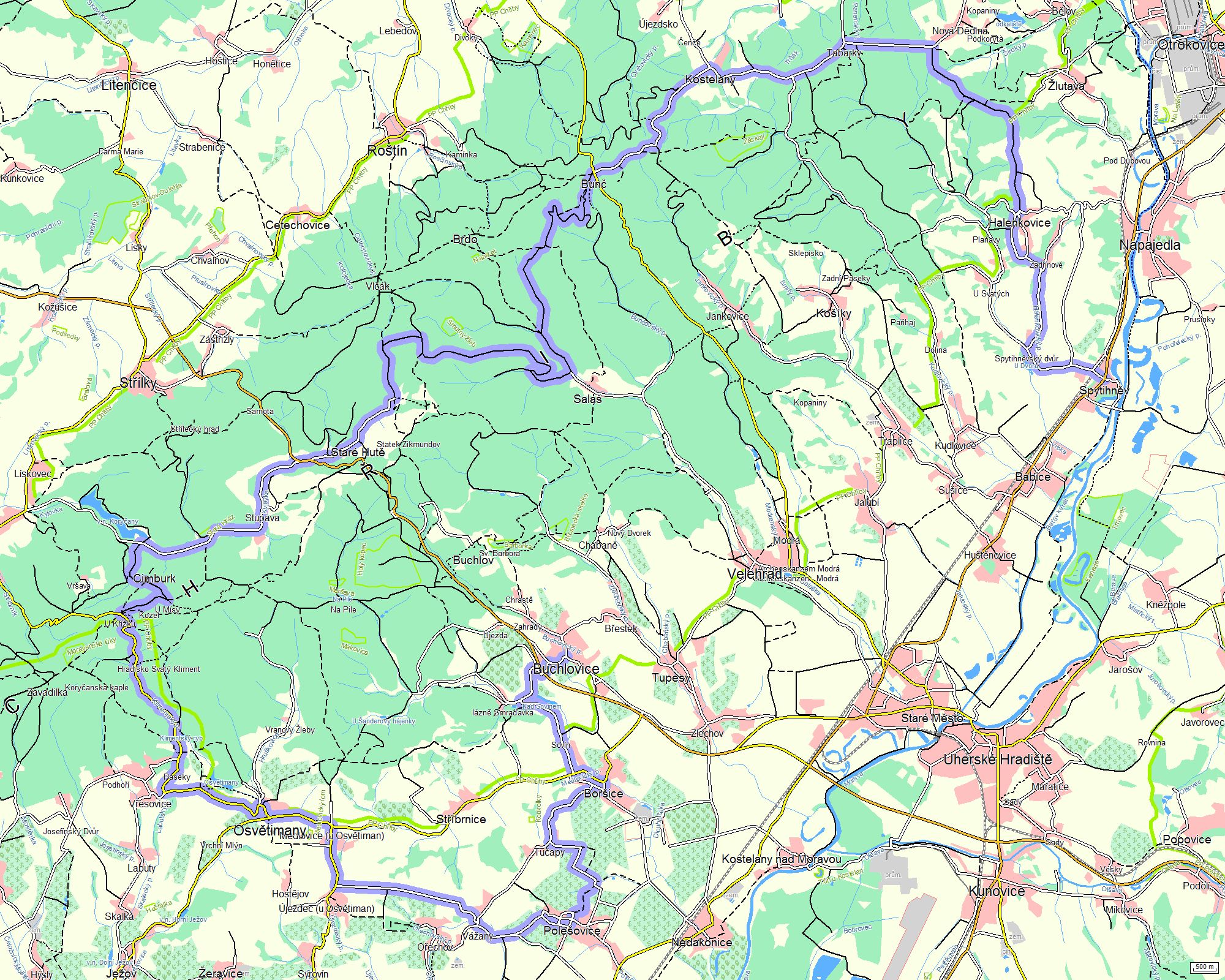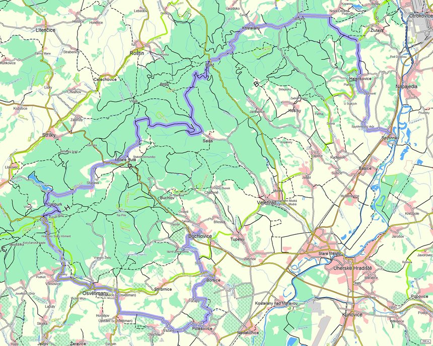 Úseky cesty typu "Lesní/polní" |