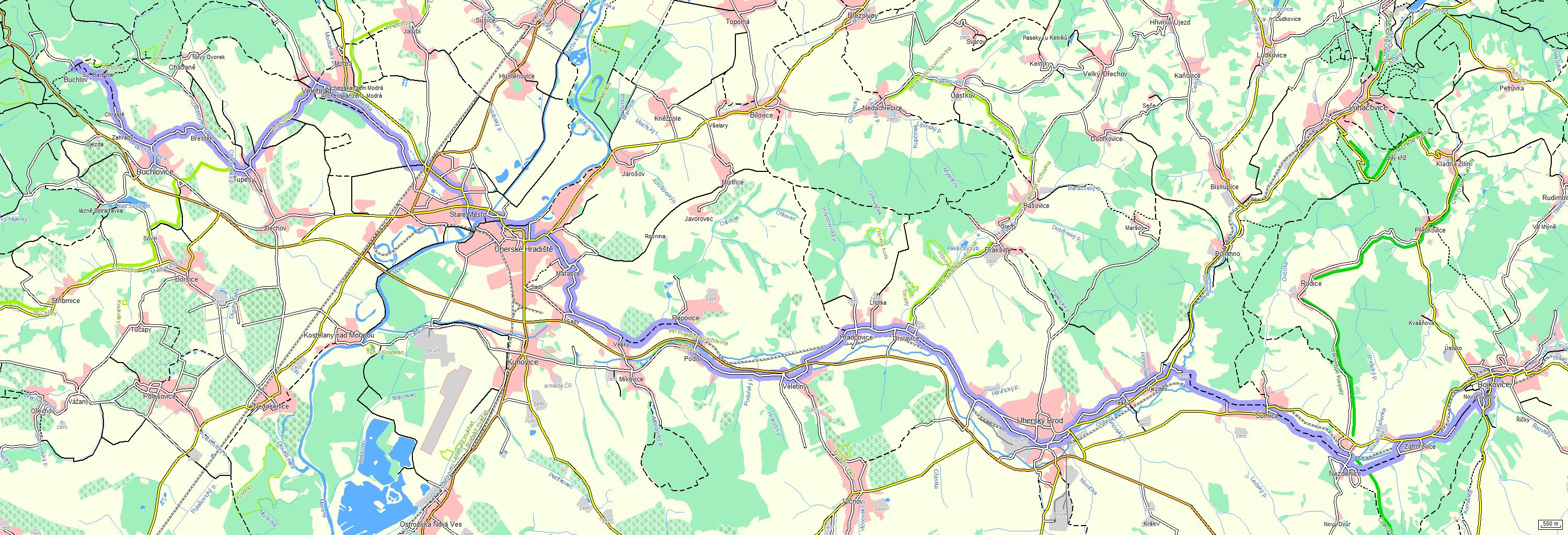 Úseky cesty typu "Silnice III.třídy/MK" |